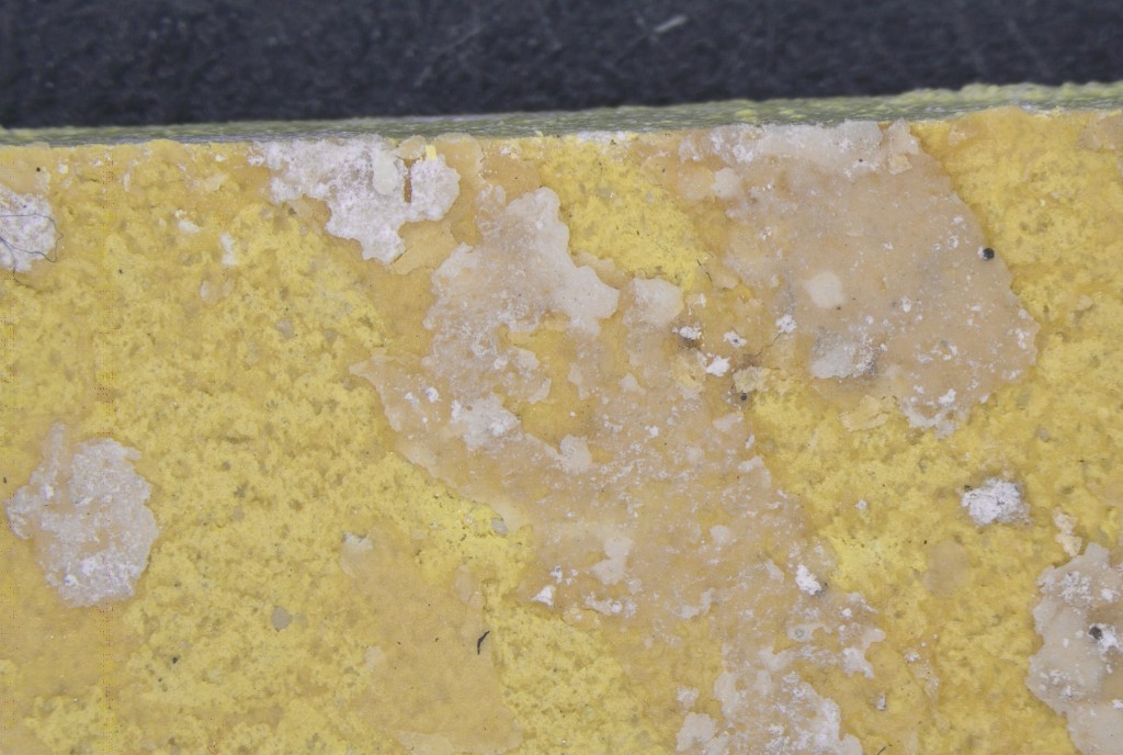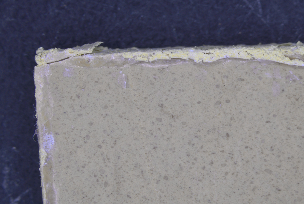 推定含有率は『0.1~5%』です。Pタイルや巾木、CFシート等の床材を分析する際は検体本体はもちろん、付着している接着剤にもクリソタイルが含有している場合があるので注意して分析しています。また、床材の上に別の床材が貼られている場合もあるので採取の際も注意が必要です。弊社では建材の採取及び分析どちらの場合も慎重に事を進めております。